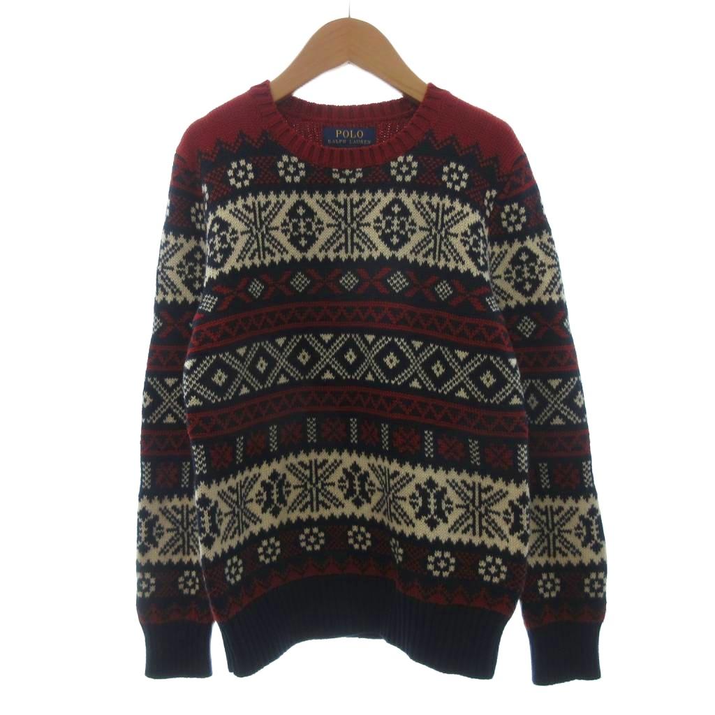 ポロ ラルフローレン POLO RALPH LAUREN ニット セーター ノルディック ウール 赤 紺 レッド ネイビー M ■GY14 キッズ