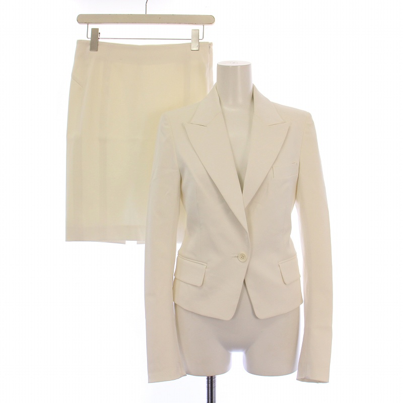 ブラック バイ マウジー セットアップ テーラードジャケット アウター シングル 総裏地 タイトスカート ひざ丈 スリット ストレッチ 白