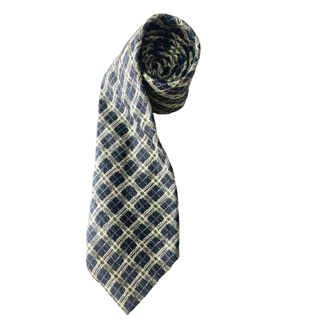 田中栄光堂 ヴィンテージ 総柄 チェック ネクタイ ビジネス ワイドタイ 黄 イエロー 紺 ネイビー メンズ