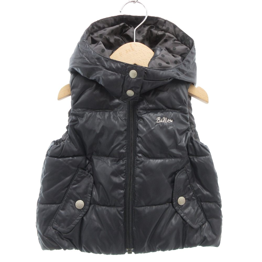 ベベ bebe 中綿ベスト 90 フード リバーシブル 総柄 無地 黒 ブラック /AE ■GY14 キッズ