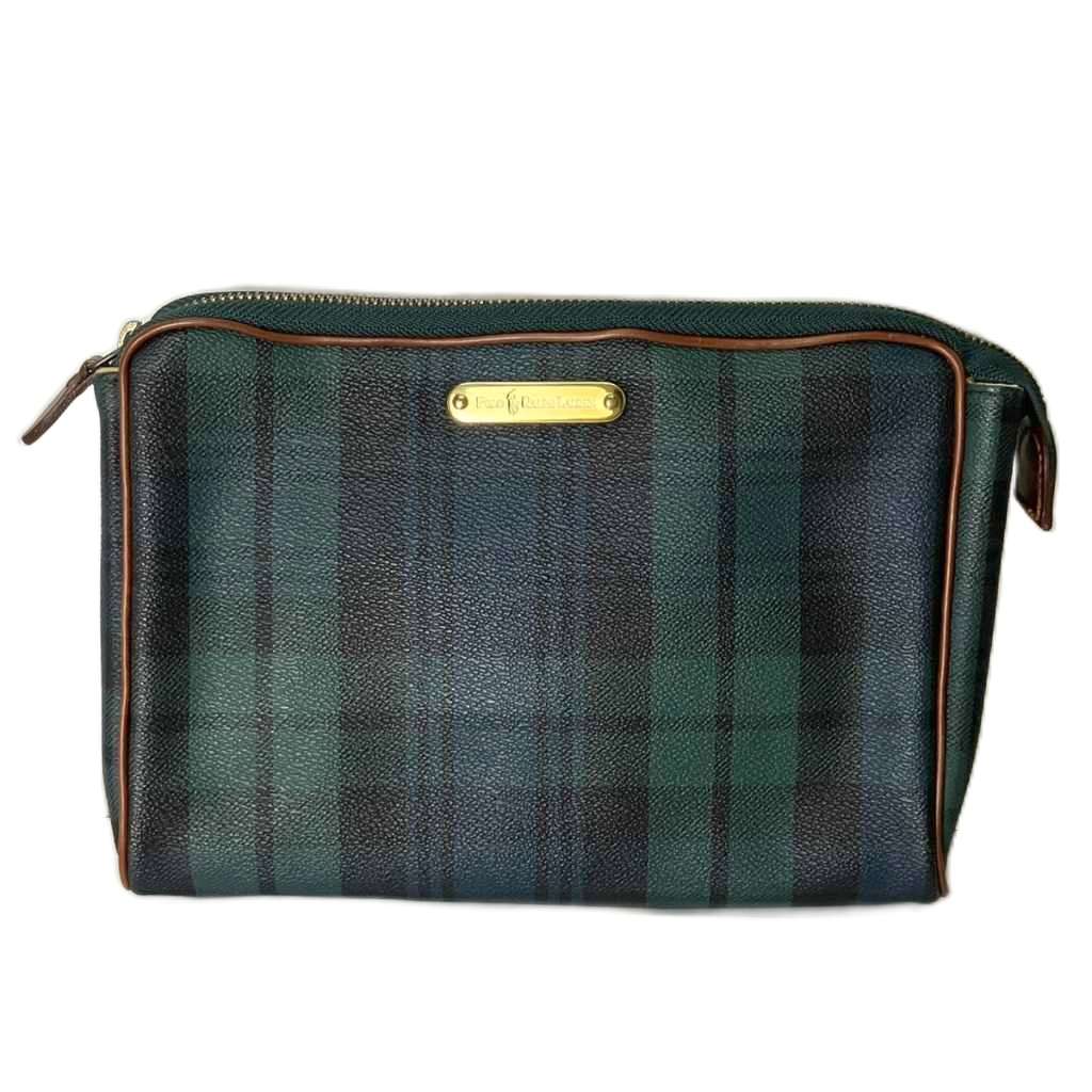 ポロ ラルフローレン POLO RALPH LAUREN ブラックウォッチ タータンチェック セカンドバッグ クラッチバッグ レザー ネイビー グリーン ■G