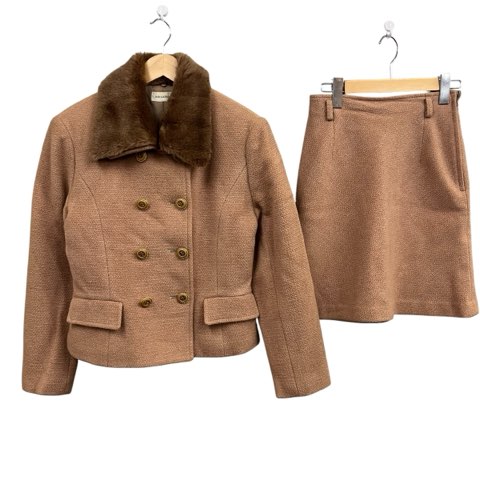 JADE GRAZE II スーツ スカートセットアップ ダブルジャケット 9AR M相当 ファー取り外し可 金ボタン キャメル系 レディース