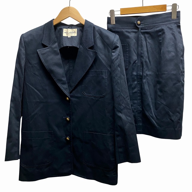 ミス アシダ miss ashida セットアップ ジャケット スカート 金ボタン 3B 背抜き 紺 ネイビー 9 M相当 レディース
