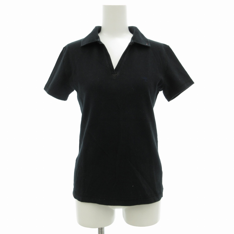 マドモアゼルノンノン mademoiselle NON NON ポロシャツ カットソー スキッパーシャツ 半袖 刺繍 ワンポイント 38 M 黒 ブラック