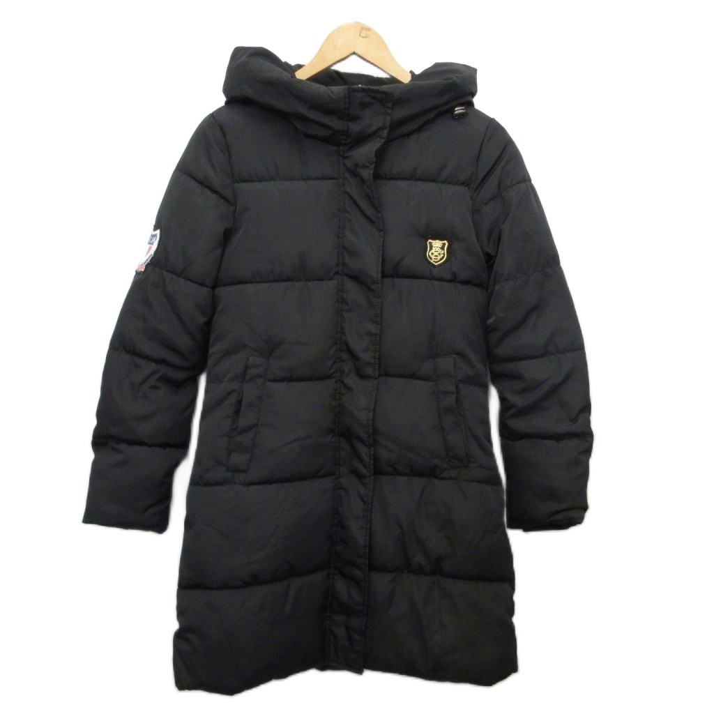 XFHH 美品 中綿コート ジャケット フーデット ロゴパッチ 黒 ブラック M ■MET2 レディース