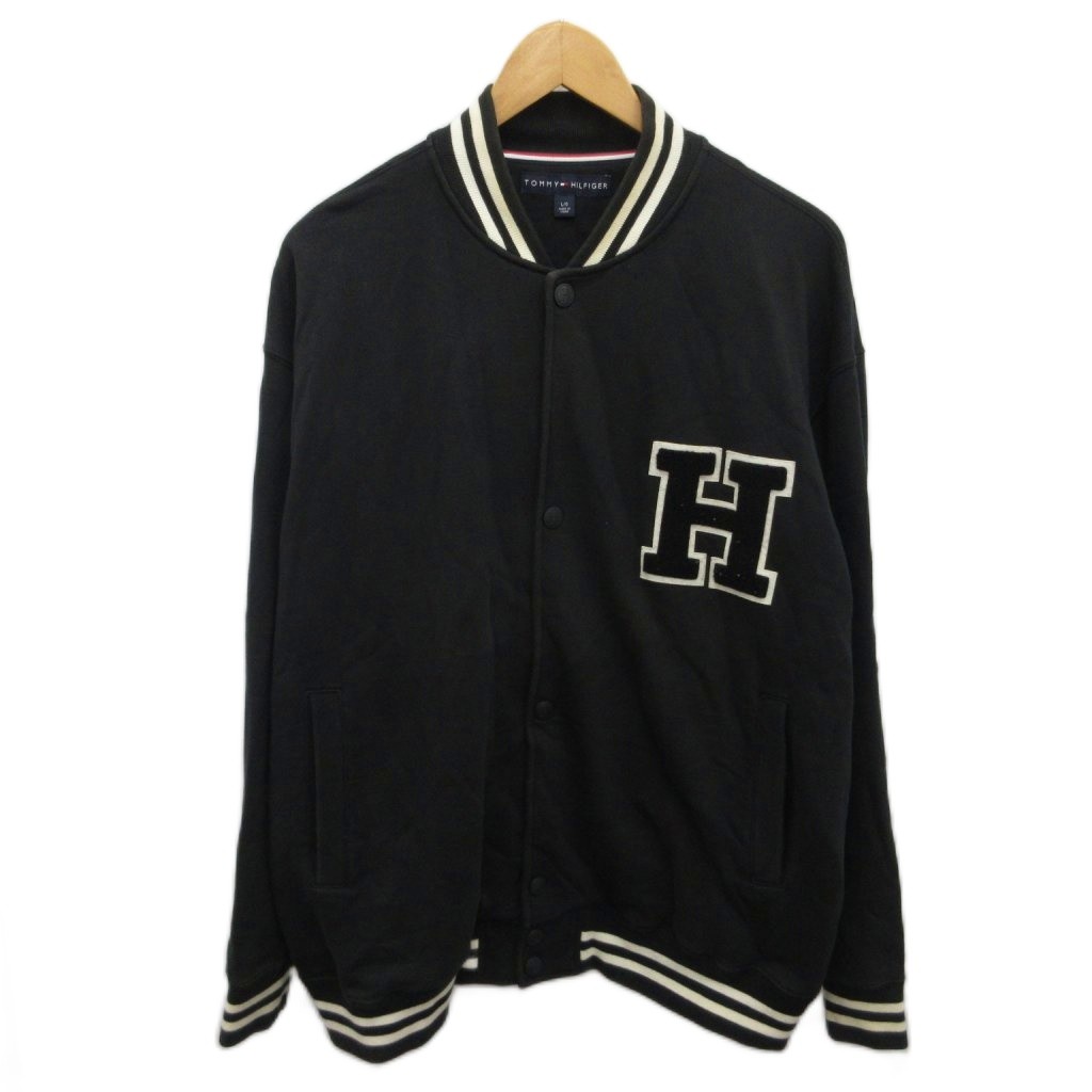 トミーヒルフィガー TOMMY HILFIGER コットンスタジャン ブルゾン L 黒 ブラック 白 ホワイト 114-611304-240 ■YHS11 メンズ