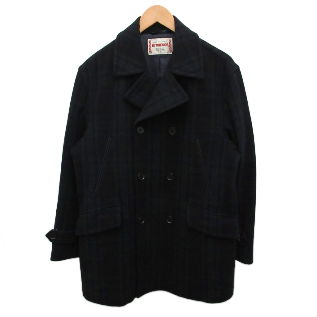 マックレガー マクレガー McGREGOR Pコート ピーコート ジャケット チェック ダブル 緑 グリーン 黒 M ■IBO90 メンズ