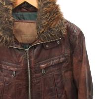 ザラマン ZARA MAN フェイクレザージャケット ブルゾン ファー S 茶 ブラウン メンズ