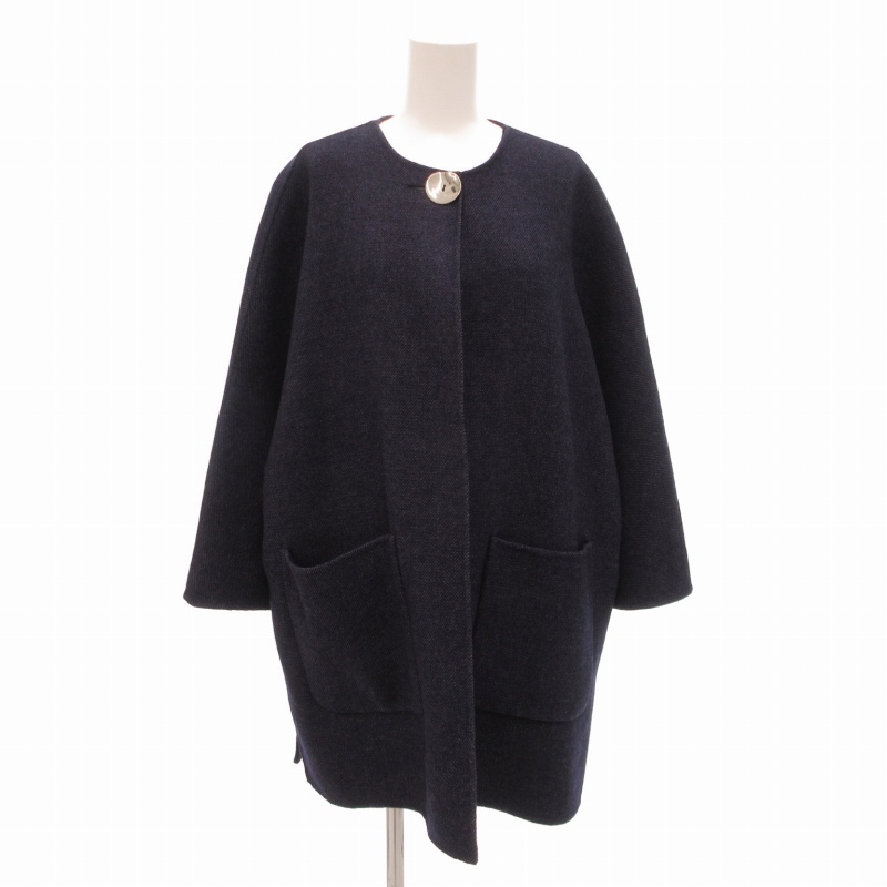 ザラウーマン ZARA WOMAN 美品 ノーカラーコート ワイド ビジューボタン ハーフ M 紺 ネイビー /TZ レディース