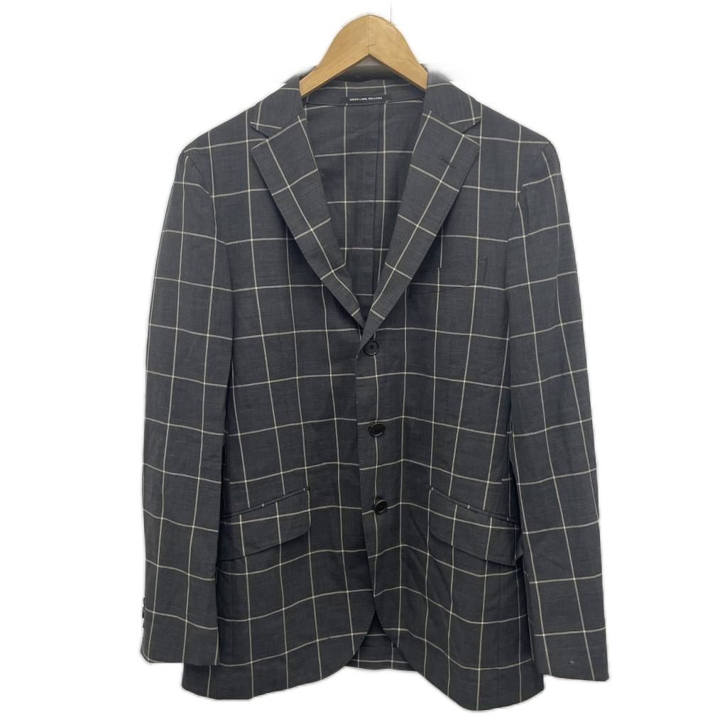 グリーンレーベルリラクシング ユナイテッドアローズ テーラードジャケット シングル 3B チェック柄 グレー 白 ホワイト ウール 46
