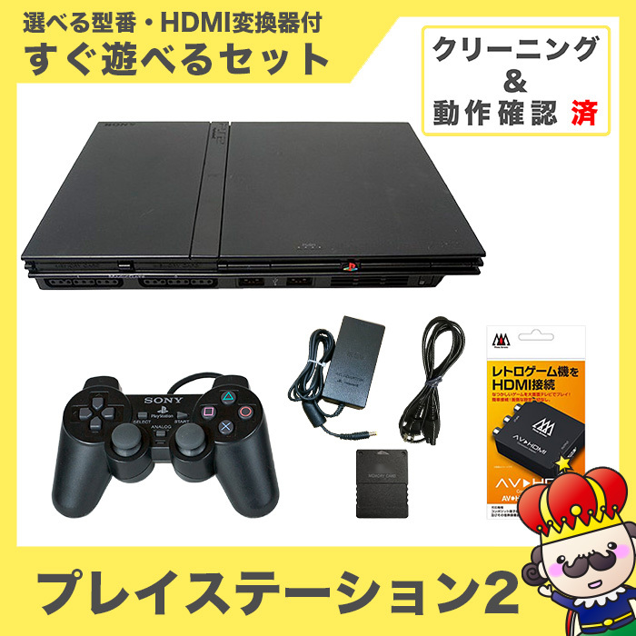 PS2 HDMI 変換 本体 すぐ遊べるセット 互換 メモリーカード 付属 選べる 型番 SCPH 70000 〜 79000【中古】