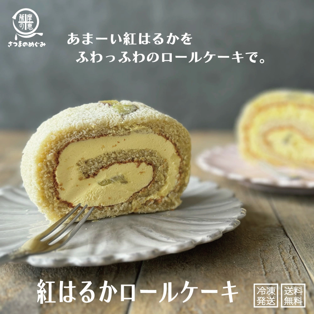 紅はるかロールケーキ 15cm×1本洋 生菓子 鹿児島産べにはるか 甘露煮した紅はるかをたっぷり使った 甘さ控えめ 生菓子