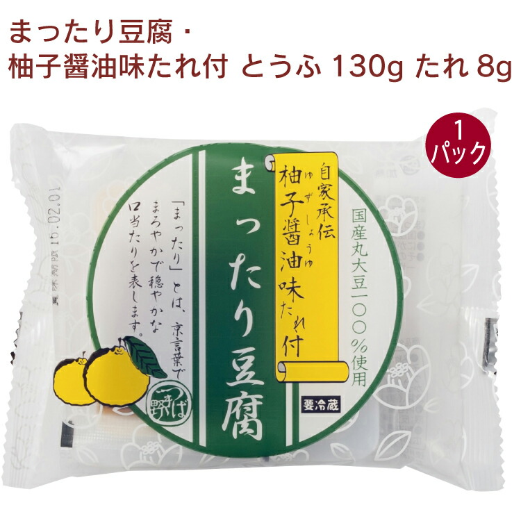 国産丸大豆100%、にがり100%使用の、口あたりのやさしいとろけるようなお豆腐です。ゆず果汁の酸味と香りが爽やかな醤油たれ付です。