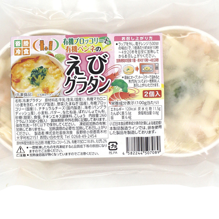 沓掛冷食 有機ブロッコリーと有機ペンネのえびグラタン 130g×2個 8パック 送料込