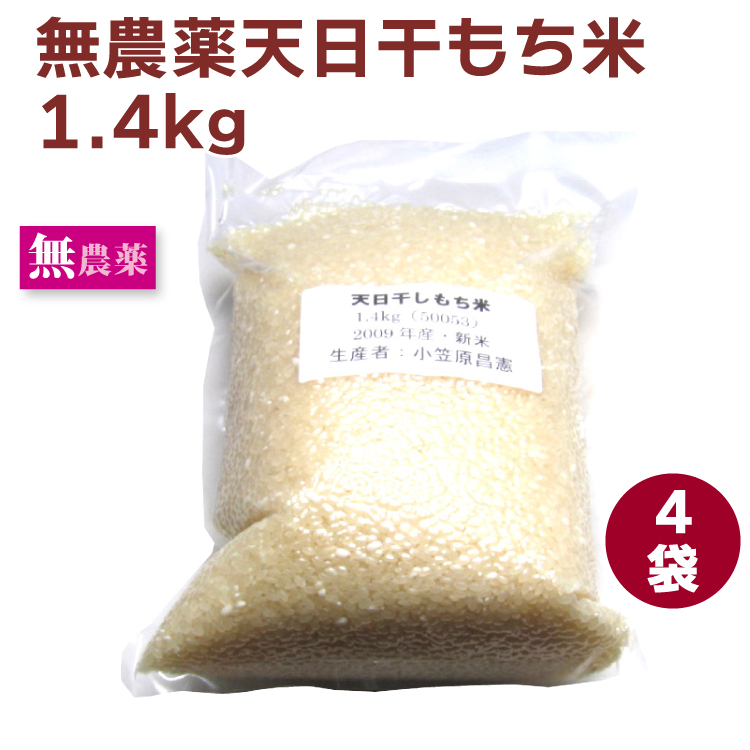 送料込 天日干 白米もち米1.4kg 4袋 無農薬栽培