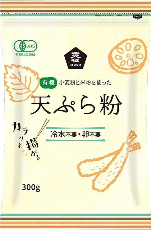 有機小麦粉・有機米粉のみで作った天ぷら粉です。水に溶いて揚げるだけで、カラッとした揚げ上がりの天ぷらができあがります。原材料がシンプルなので、様々な料理に利用できます。 原材料:有機小麦粉(国内製造)、有機米粉 内容量:300g 数量:8袋 販売者:ムソー