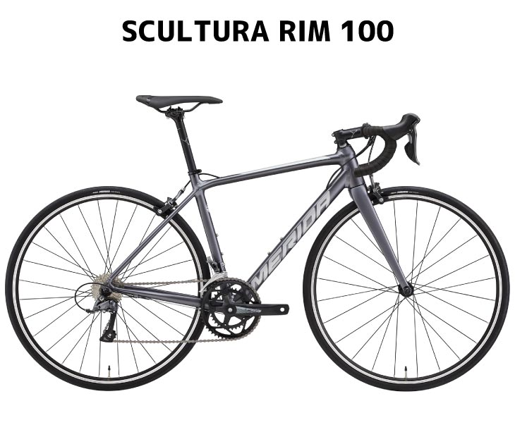 MERIDAの高品質アルミフレームとフルカーボンフォークを組み合わせたSCULTURA Rim 100は、キャリパーブレーキを採用した軽量スペック。