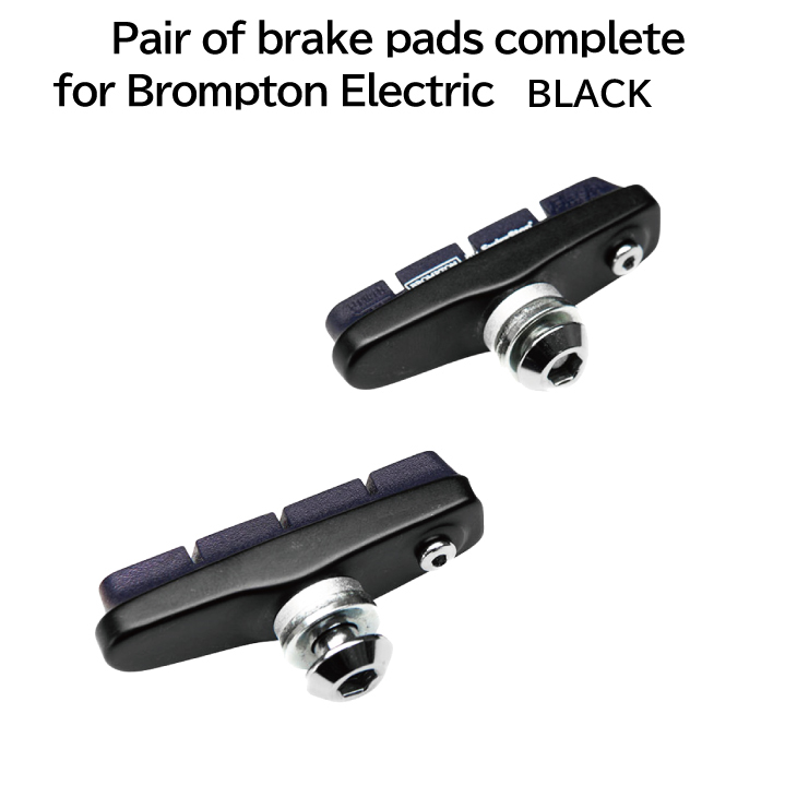 Pair of replacement brake pads complete for Brompton Electric ブレーキパッドが摩耗の兆候を示している場合の交換用ブレーキパッド(ペア)です。