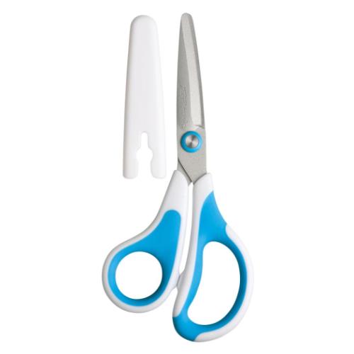 はさみ のり 文具 文房具 おしゃれ 雑貨3Dアーチ刃とフッ素コートで、糊やテープで刃がべたつきにくい。図工でよく使う牛乳パックがサクサク切れる。食いつき刃で、切り始めが滑らない。子供にもかる?い重量で、操作がしやすく疲れにくい。指にフィットして、細かい作業がしやすい非対称ハンドル。丸い刃先で安全、安心こども仕様。サイズ:約150x70x10mm素材:ステンレス鋼、PPメーカー品番:SK-5247-B 糊/文房具/工作/学校/事務用品 ステーショナリー「のり はさみ」