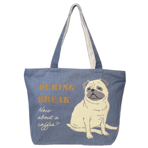 ファスナー付き横型トートバッグ トートバッグ コテツおすわり NV ミントイン いぬ A4サイズ対応 手提げかばん