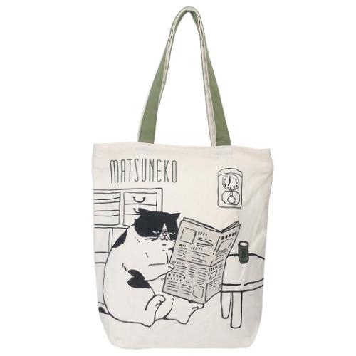 トートバッグ ファスナー付きキャンバストート マツネコ朝刊 ミントイン 手提げかばん