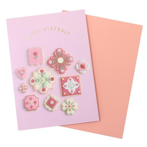 手紙 デザイン レターセット おしゃれ デザイン メッセージ人気のスイーツアーティストKUNIKAさんとのコラボレーション雑貨が登場アイシングクッキーの美しいデザインと世界観を感じられる、お花をテーマにしたシリーズですこちらはかわいい[バースデーカード]美しいアイシングクッキーがメッセージをより華やかに見せてくれそうなバースデーカード。表面にはHAPPY BIRTHDAYの文字が金箔押しで施されています。同シリーズの文具いろいろあるのでお気に入りを揃えてくださいサイズ:約145x105mm(封筒)/約100x140mm(カード)[Made in Japan] 封筒/レターセット/メッセージカード/手紙/便箋 ステーショナリー「グリーティングカード」