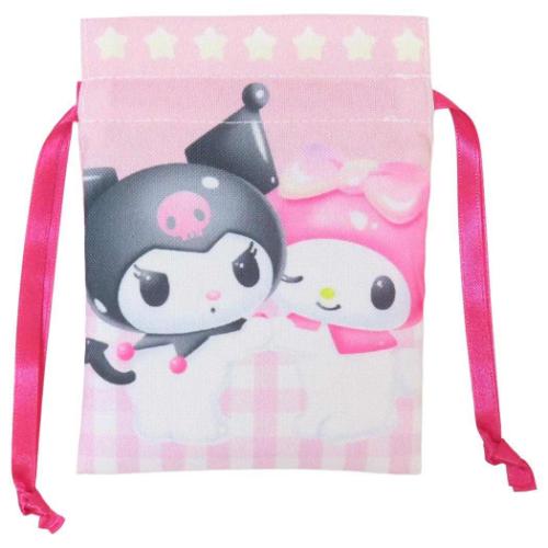 豆巾着 ミニ巾着 チェック マイメロディ&クロミ サンリオ マリモクラフト まめきんちゃく 小物入れ 日本製 キャラクター