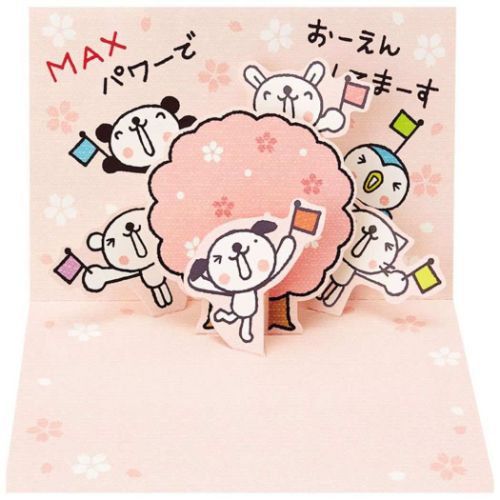 グリーティングカード 二つ折りポップアップカード 立体 おきがるふれんず 桜の木 サンリオ 応援 メッセージカード キャラクター