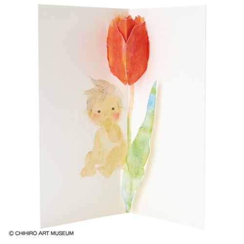 グリーティングカード 二つ折りポップアップカード 立体 いわさきちひろ チューリップとあかちゃん サンリオ 多目的