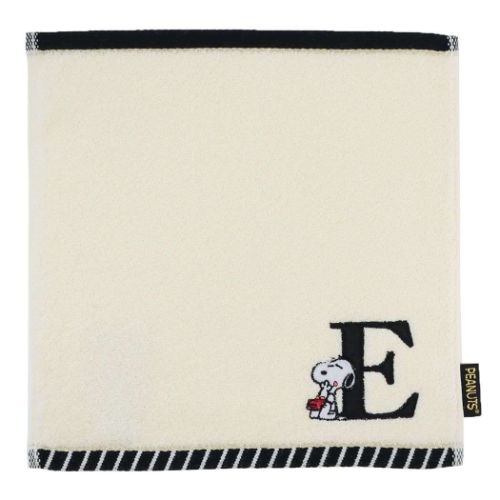 ミニタオル ふわふわイニシャルハンカチタオル スヌーピー E 西川 ピーナッツ