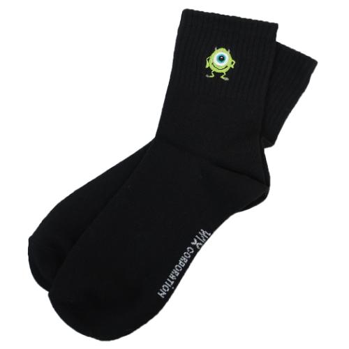 ディズニー 女性用靴下 レディース ワンポイント刺繍アメリブロークルーソックス モンスターズインク ブラック マイク ウイックス【メール便可】