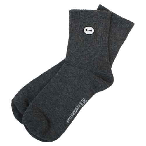 ディズニー 女性用靴下 レディース ワンポイント刺繍アメリブロークルーソックス チャコール ベイマックス ウイックス【メール便可】