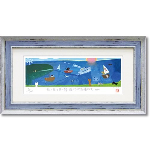 版画 ジグレー版画 糸井忠晴 海の響 ユーパワー 41x22cm 額付き ギフト メッセージ