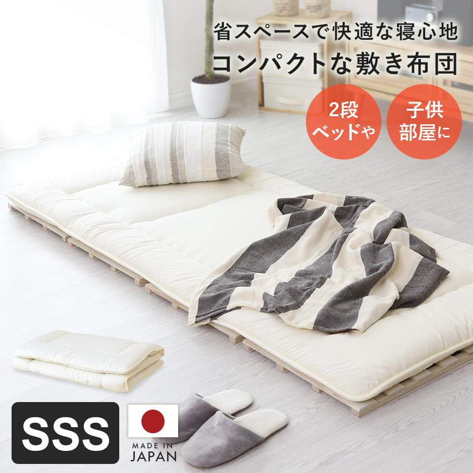 通常サイズの布団でははみ出してしまう子供用のロフトベッドや、2段ベッドにちょうど良いサイズ感。