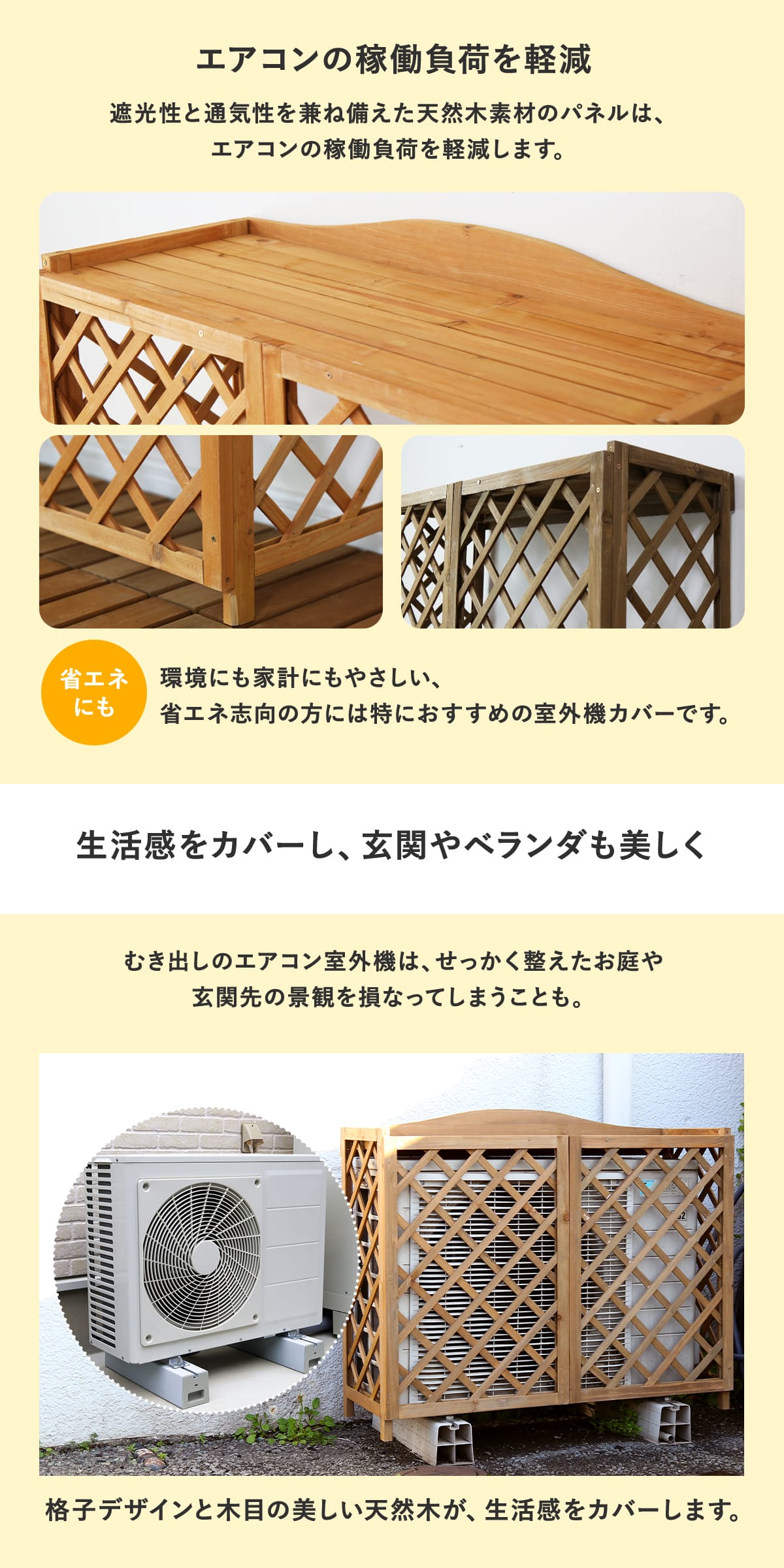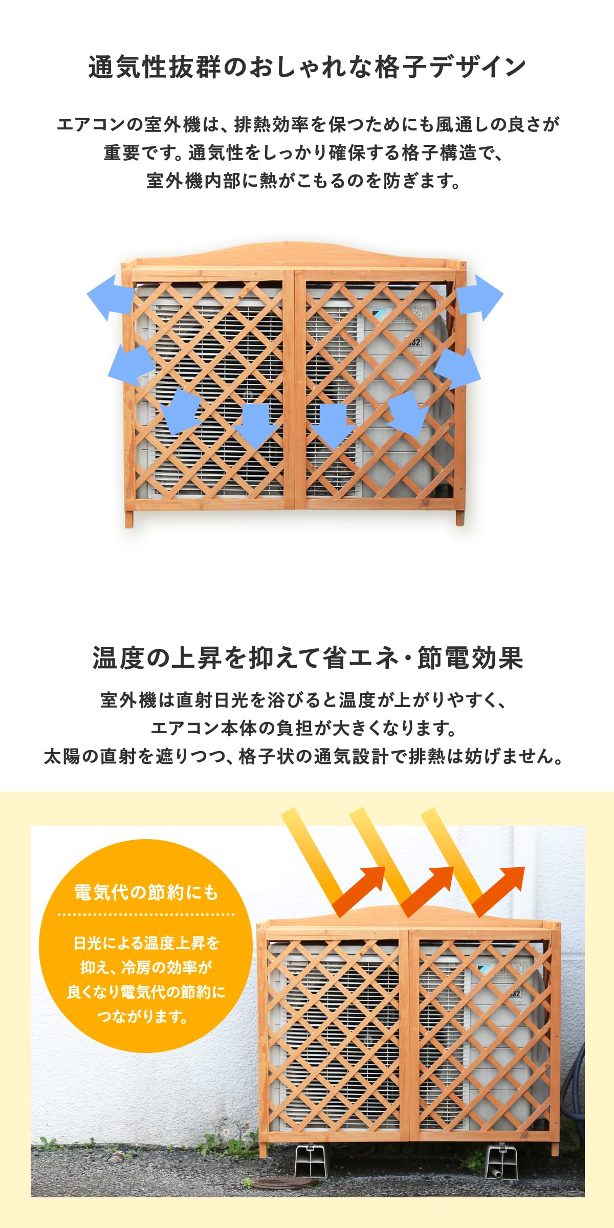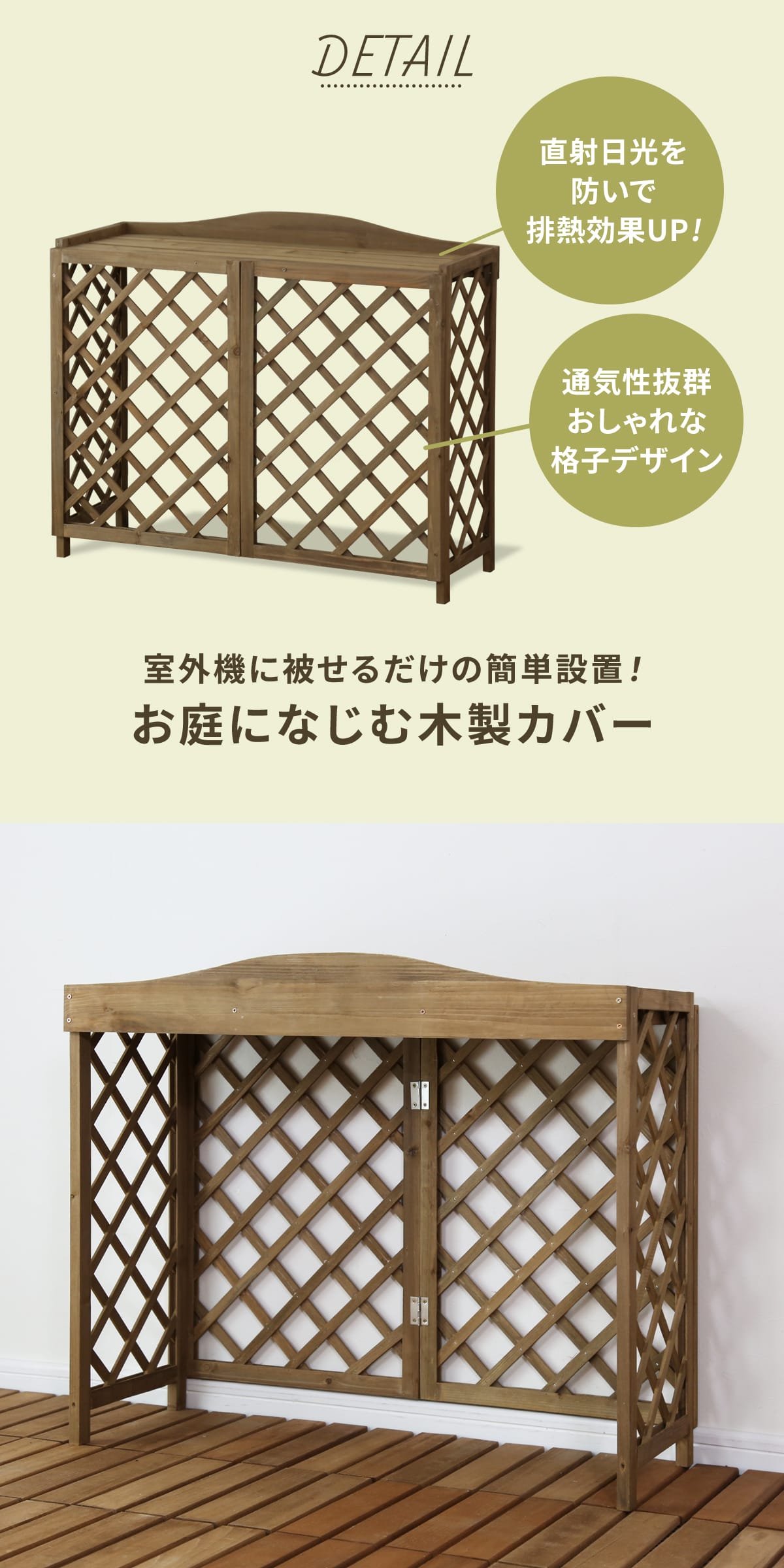 エアコン室外機カバー 室外機カバー 木製 おしゃれ DIY 収納 日よけ 積雪対策 省エネ 遮熱 幅90 室外機ラック カレンデュラ ドリス