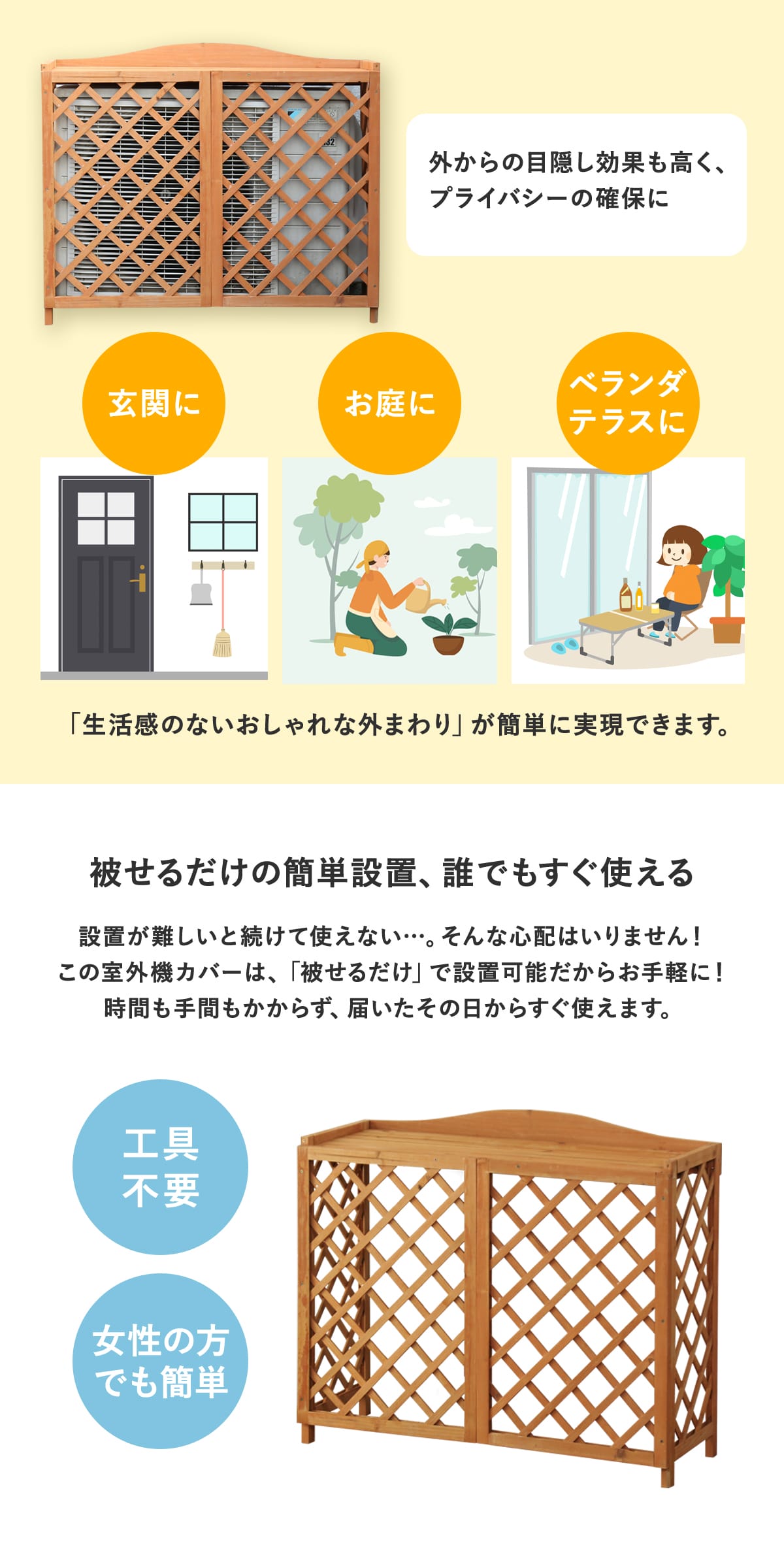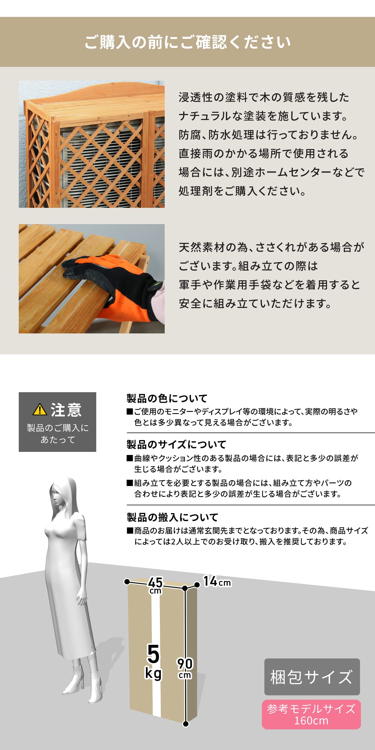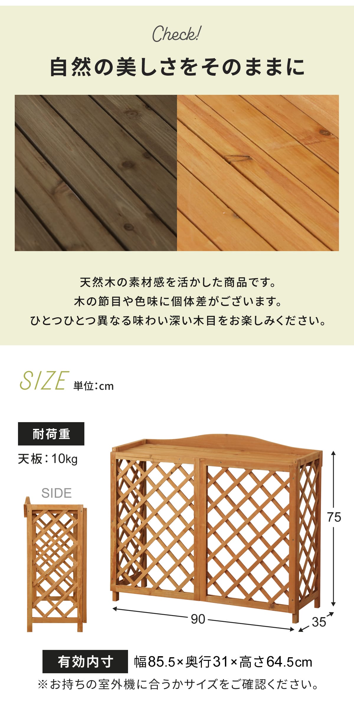 エアコン室外機カバー 室外機カバー 木製 おしゃれ DIY 収納 日よけ 積雪対策 省エネ 遮熱 幅90 室外機ラック カレンデュラ ドリス