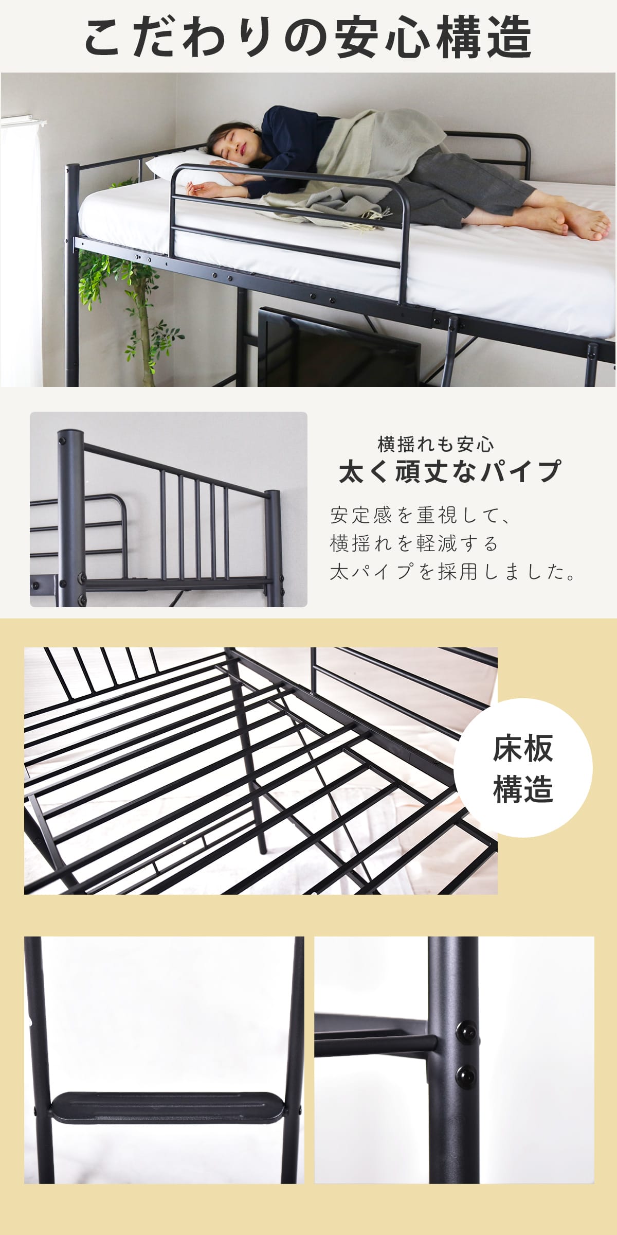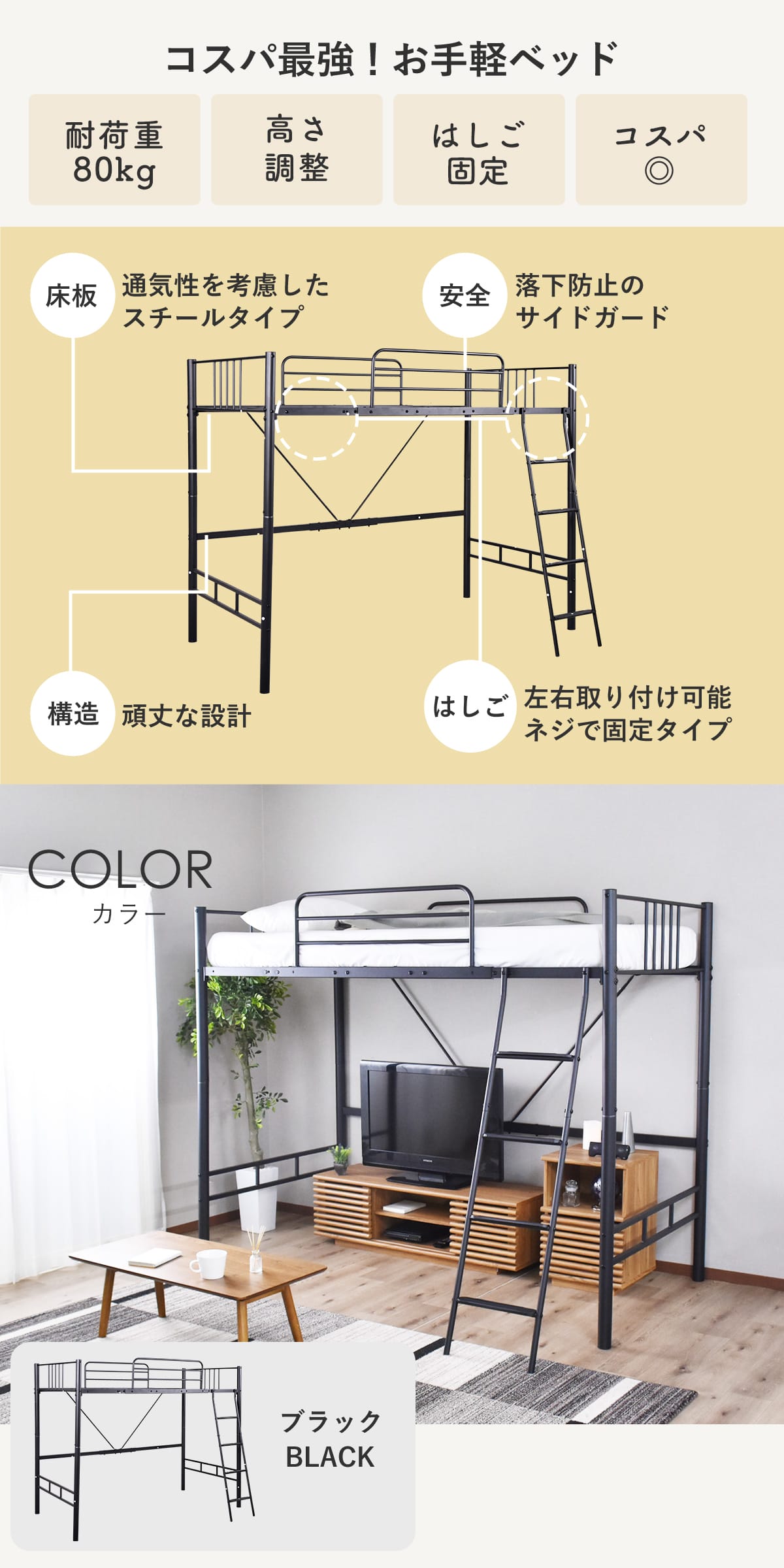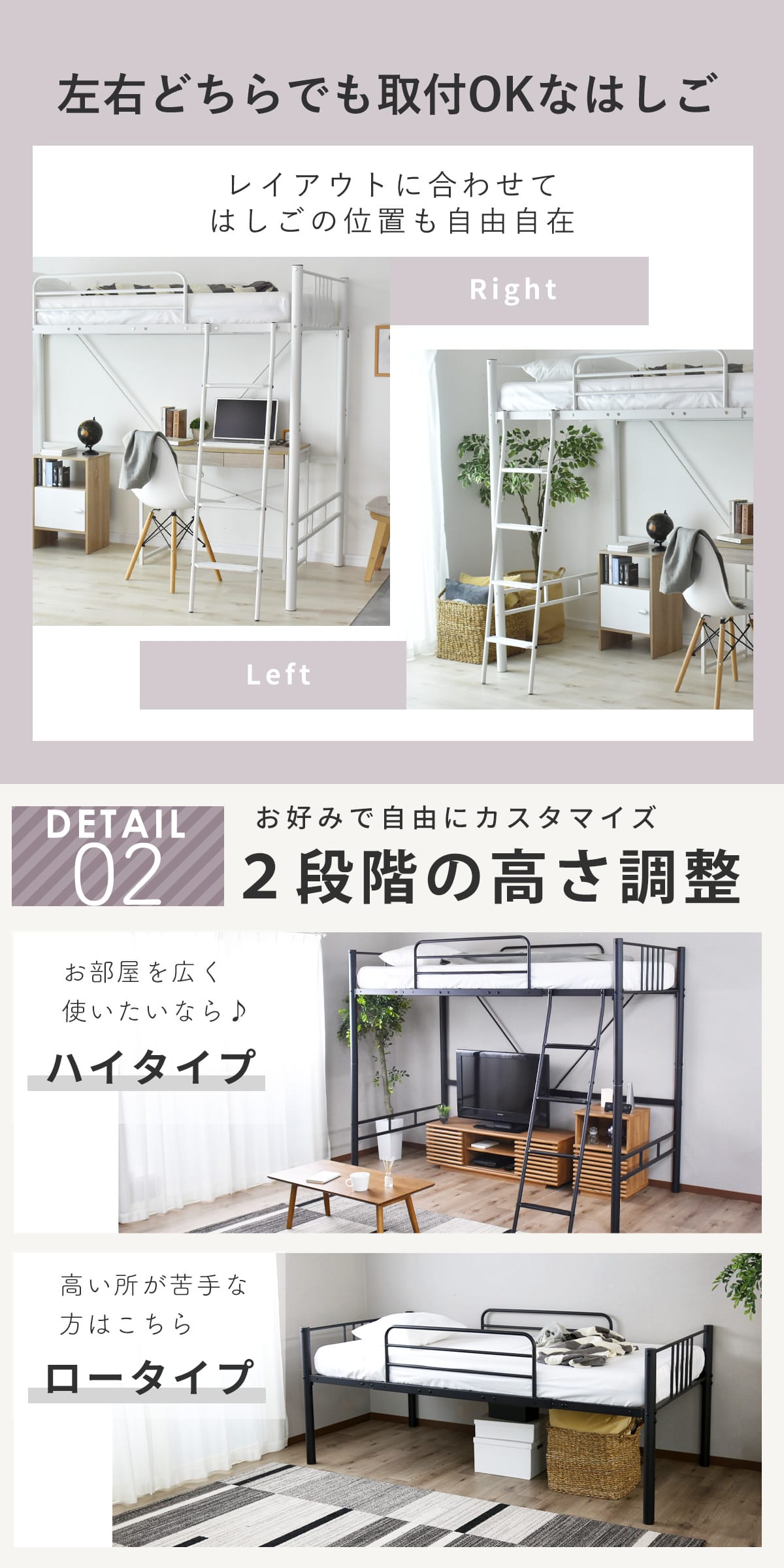 ロフトベッド 階段 システムベッド シングル ベッド 高さ調整 フレーム単品 パイプベッド ベッド 子供部屋 カノンnew