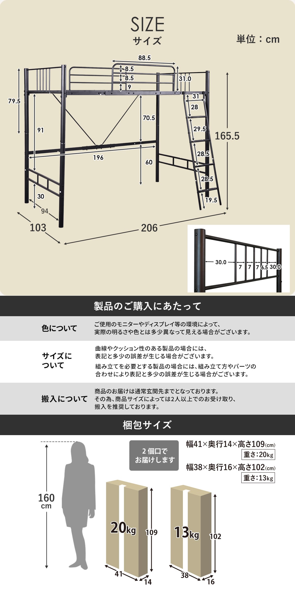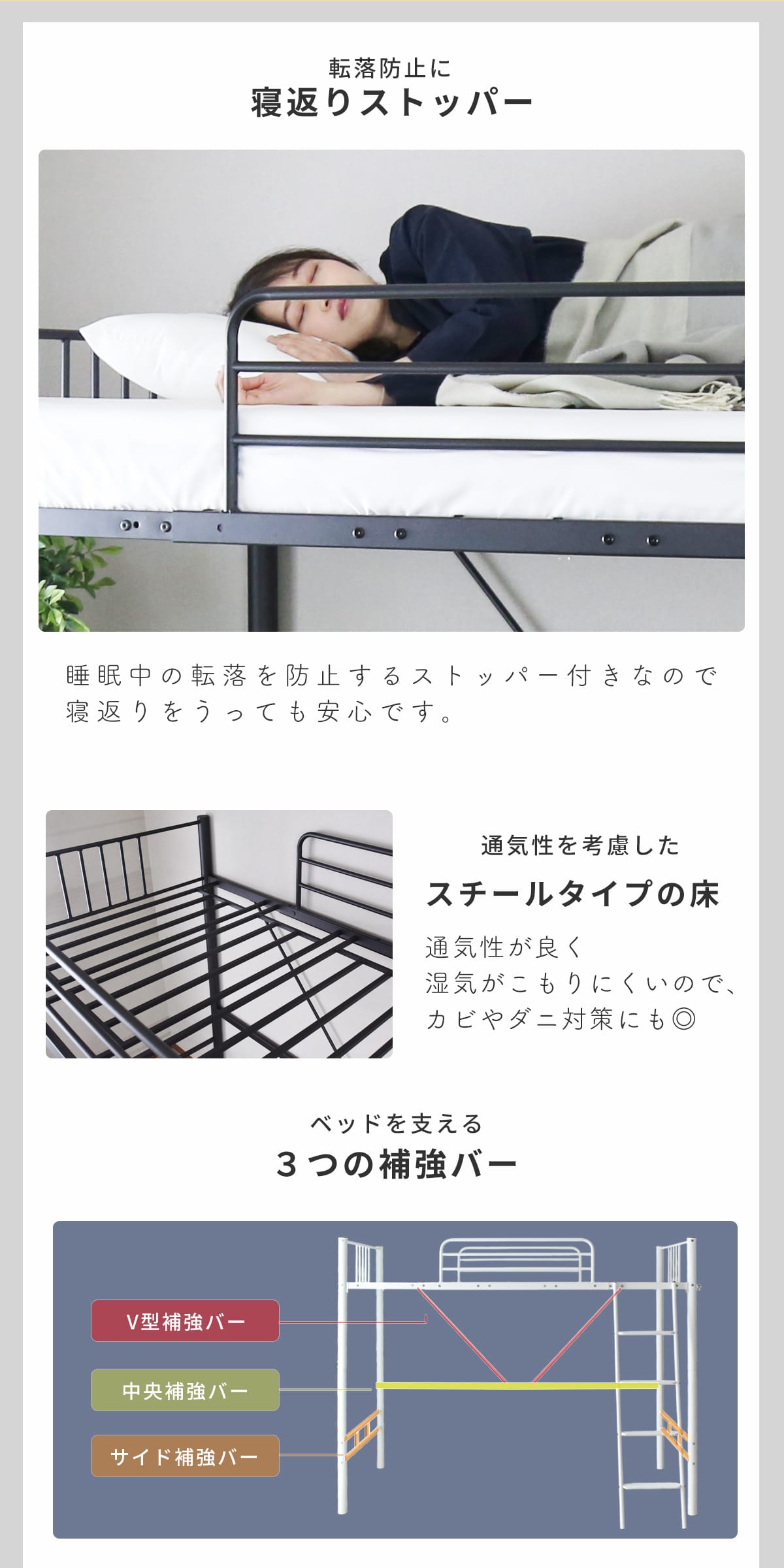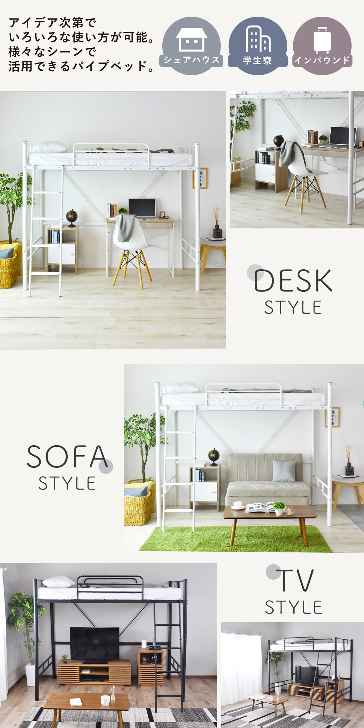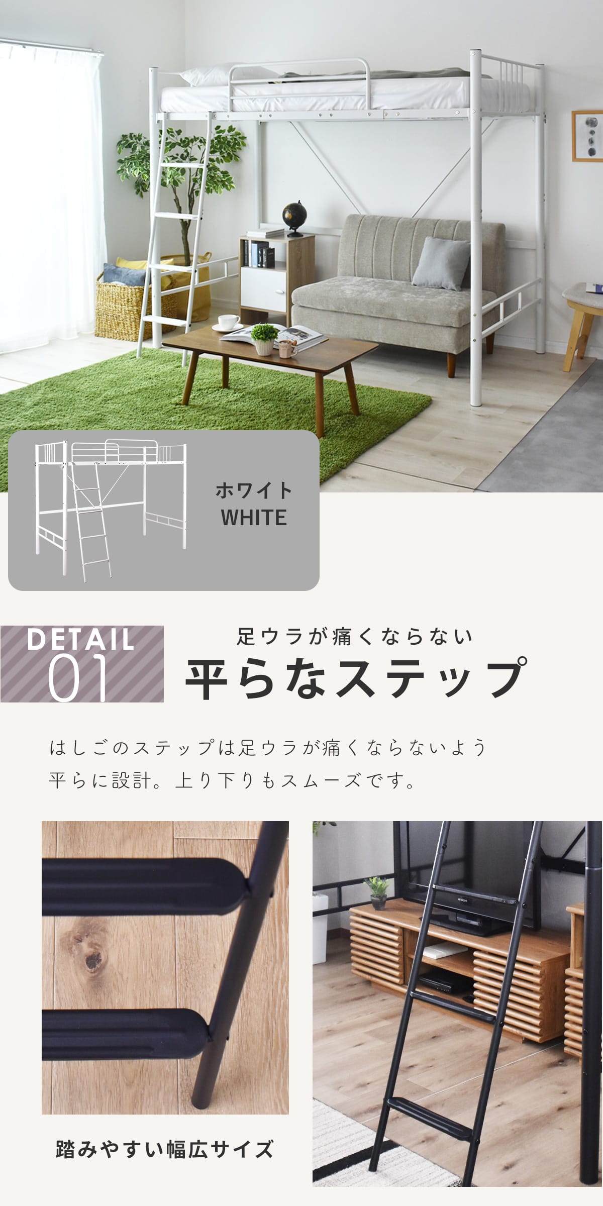 ロフトベッド 階段 システムベッド シングル ベッド 高さ調整 フレーム単品 パイプベッド ベッド 子供部屋 カノンnew