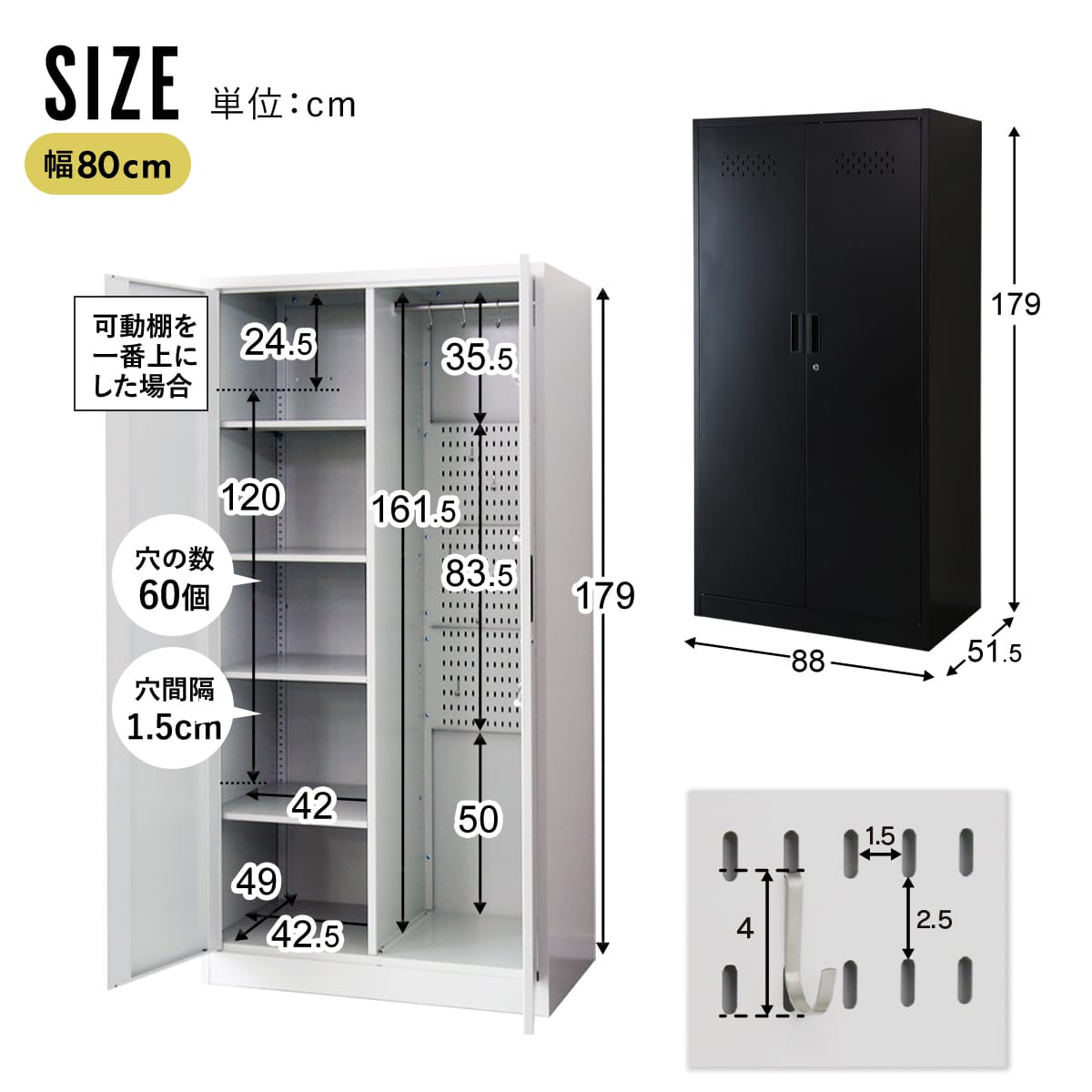 【幅80cm】幅88×奥行51.5×高さ179(cm)