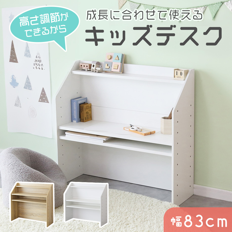 お子さまの成長に寄り添い、長く使える木製のキッズデスク。棚板の高さを自由に変えられるため、成長に合わせて使い方を変化させられるのが大きな魅力。シンプルなデザインなので、リビングに置いても雰囲気を損なわず、すっきりとした空間をキープ。収納棚としても活用できるので長期的なライフスタイルにフィットします。