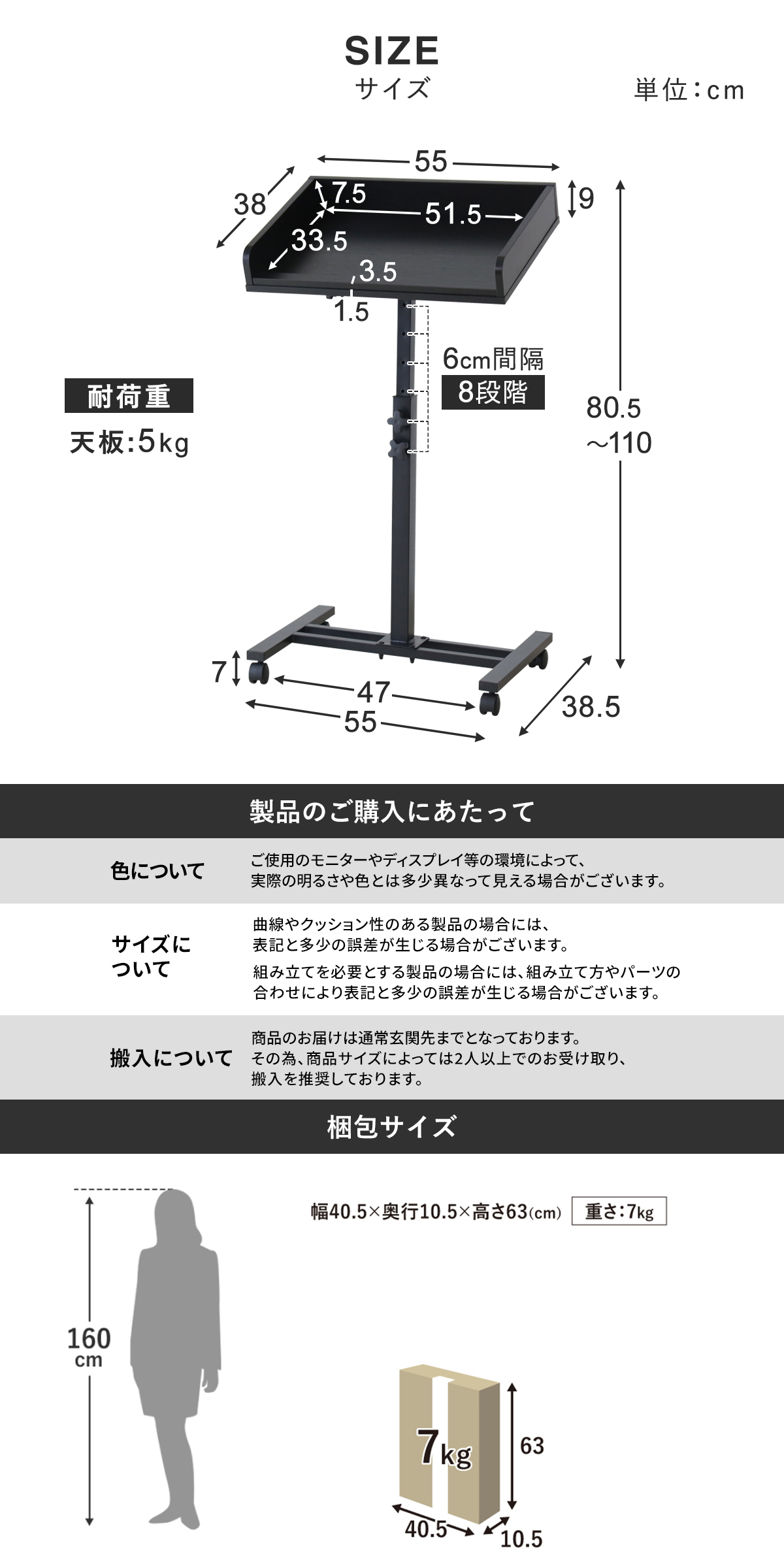 奥行38.5cmというスリムな設計で、狭いスペースでも圧迫感を与えずスマートに設置可能です。店舗の入り口やイベント会場の受付など、人の回遊が多い限られたスペースでも邪魔になることはありません。もしものときはキャスターが付いているので、ササっと移動も簡単!