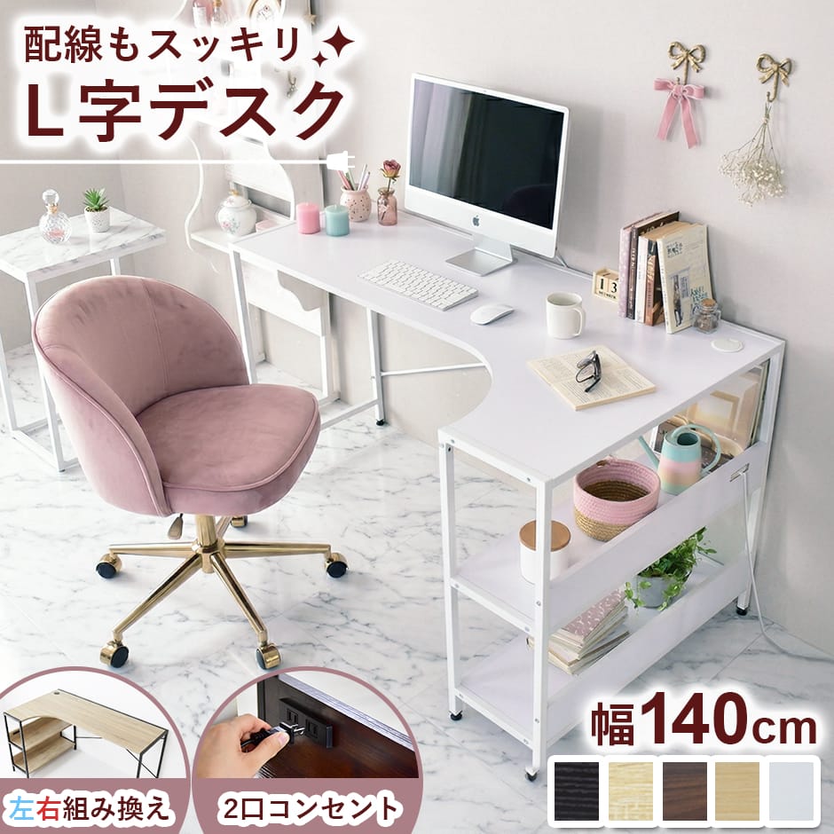 デスク pcデスク パソコンデスク 140cm L字型 パソコン 収納一体型 学習机 勉強机 収納 棚 ラック付き 北欧 ベラルド