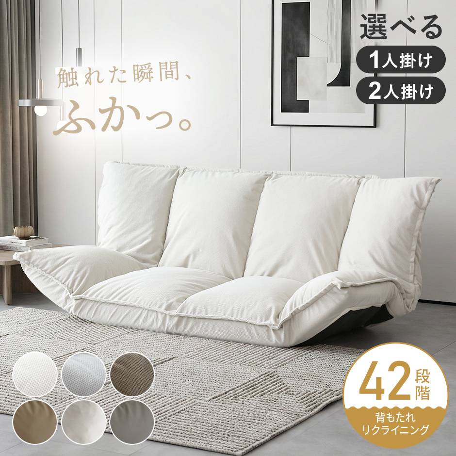 1P/2Pそれぞれ5か所に独立したリクライニングギアを内蔵。背もたれには42段階、左右の肩と肘位置には14段階のギアがあり、お好みの角度に細かく調整できるので絶対にベストポジションが見つかるはず♪“引っかかりなく切り替えられる滑らかなギア”も使用する上で見逃せないポイント。日常のちょっとした休憩から本格的なリラックスタイムまで、幅広くフィットする快適性能です。