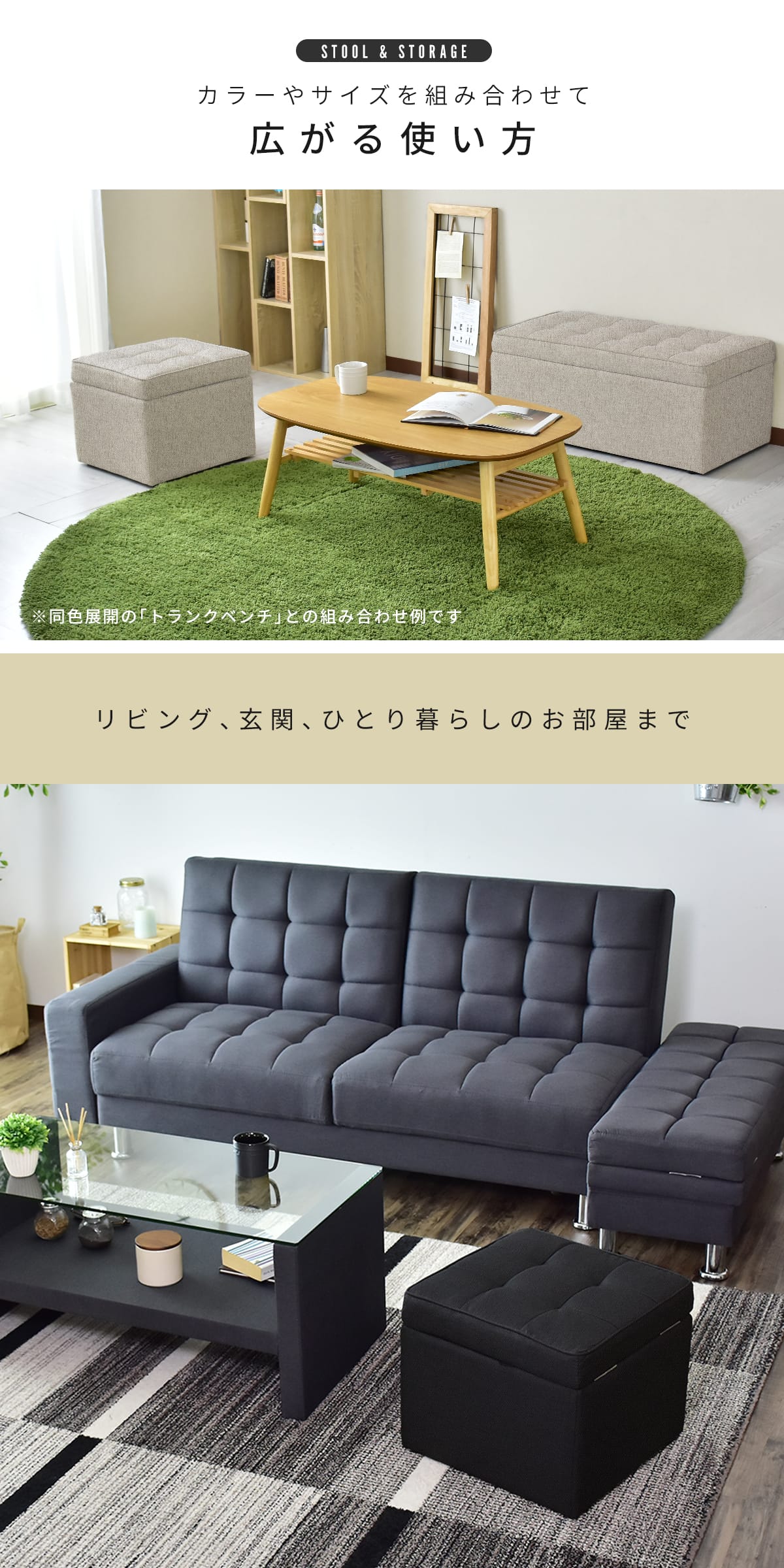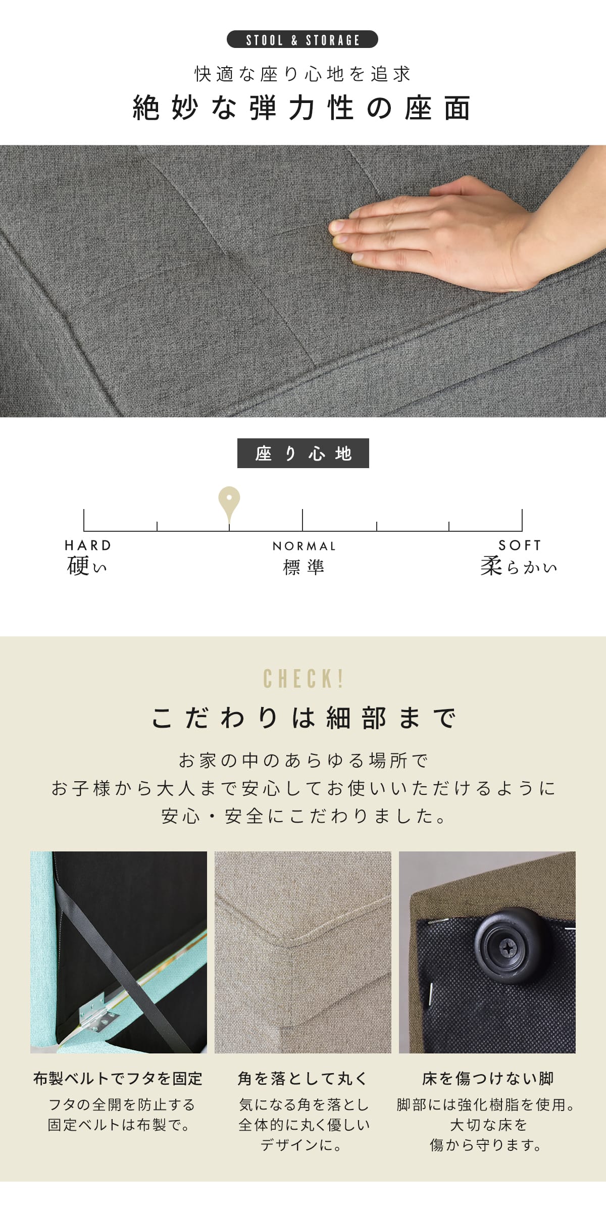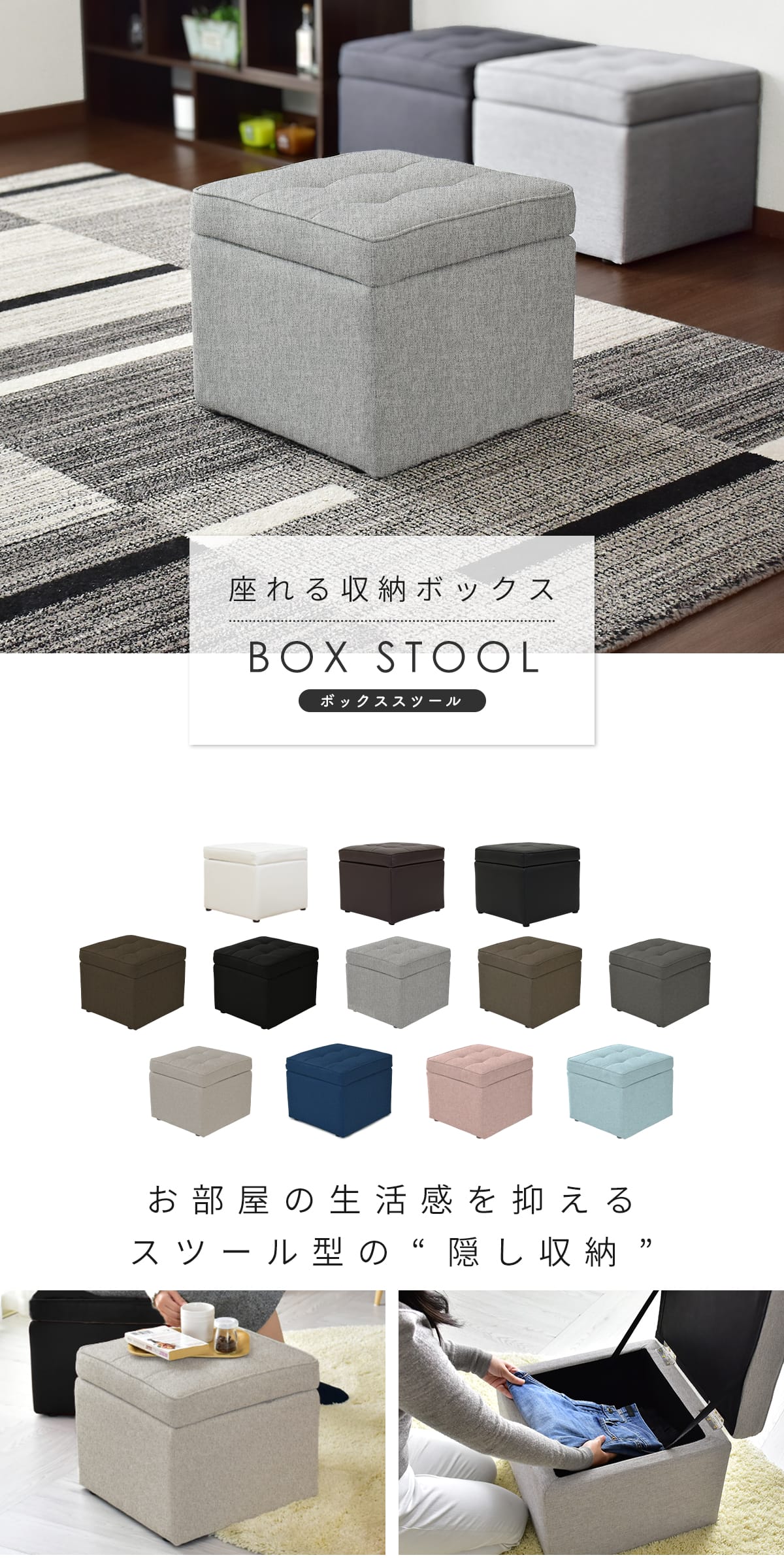 お部屋の生活感を隠せるおしゃれな収納スツール。