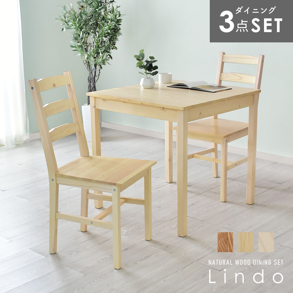 ダイニングテーブル ダイニングテーブルセット 3人掛け ダイニング 幅75 食卓 パイン材 北欧 リンド3点 ドリス