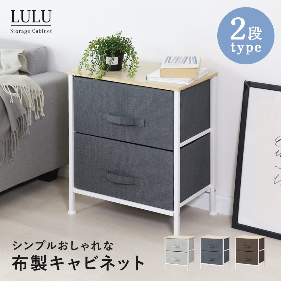 チェスト 収納 ローチェスト 2段 カラーチェスト 布張り 収納チェスト リビング 寝室 ランドリー収納 布製ボックス 北欧 ルル2段new