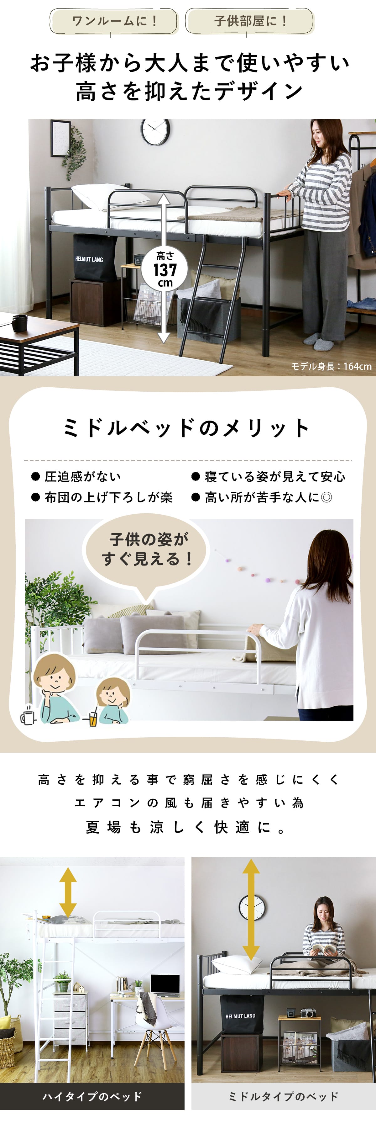 お子さまの顔が見える高さ137cmのミドルサイズベッドが登場♪