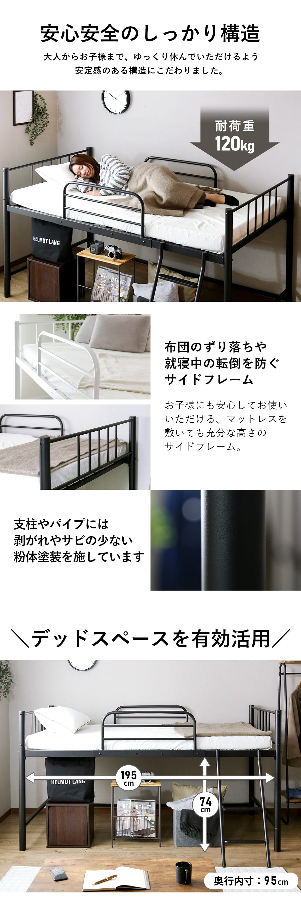 ・お布団のずり落ちや就寝中の転倒を防ぐサイドフレーム付き