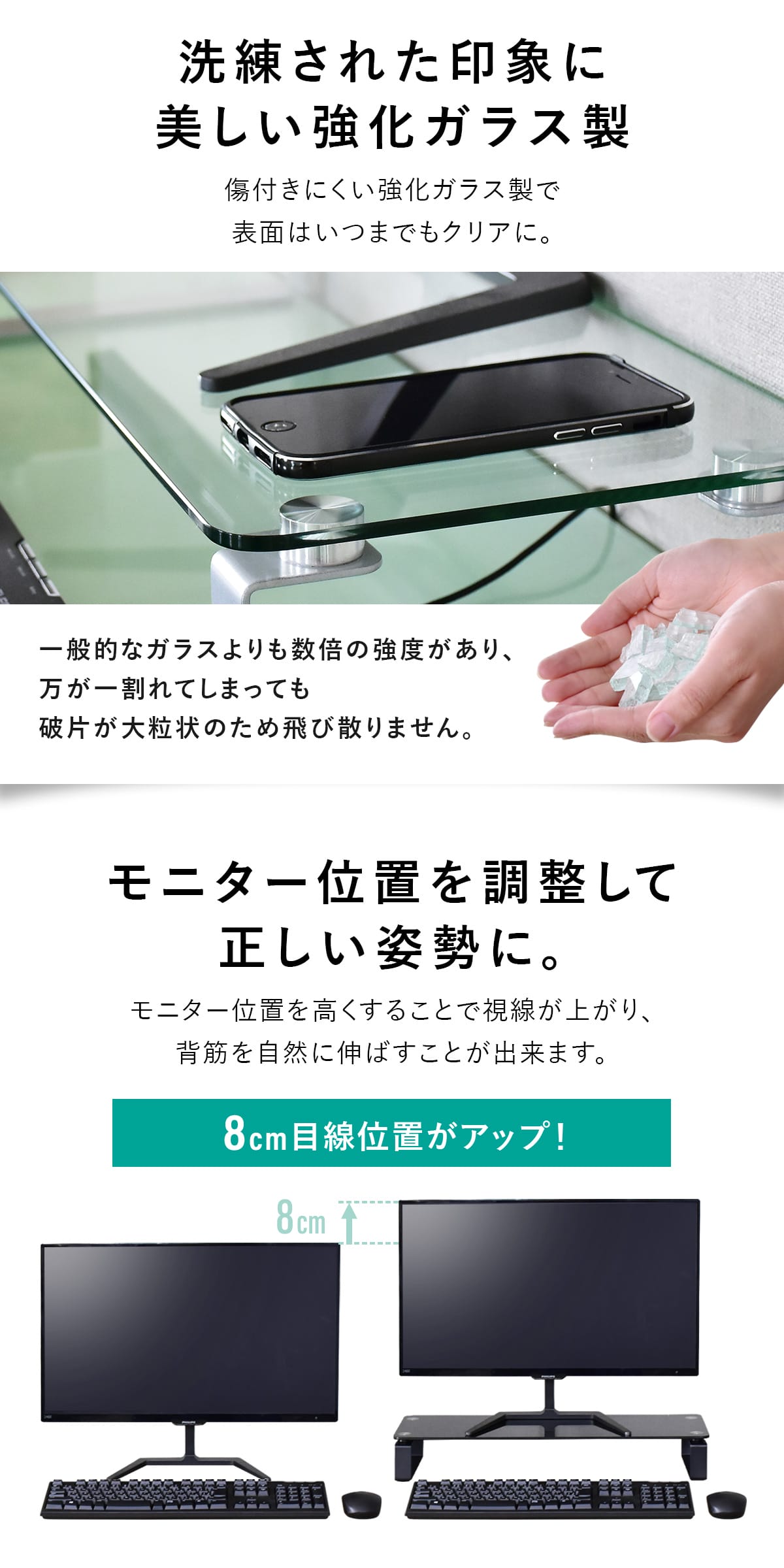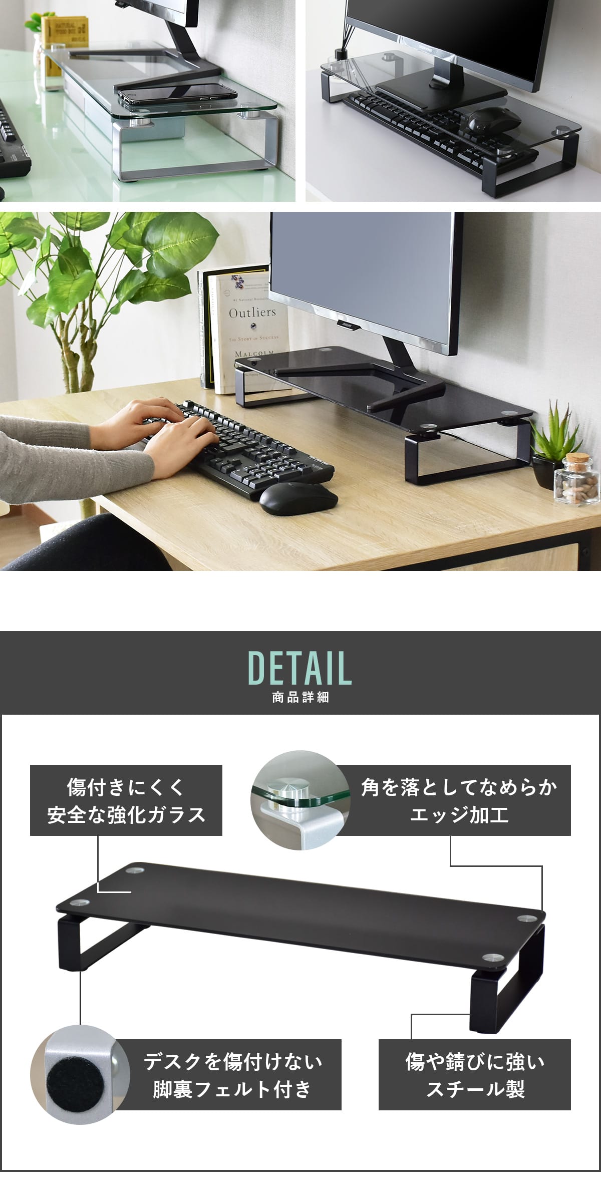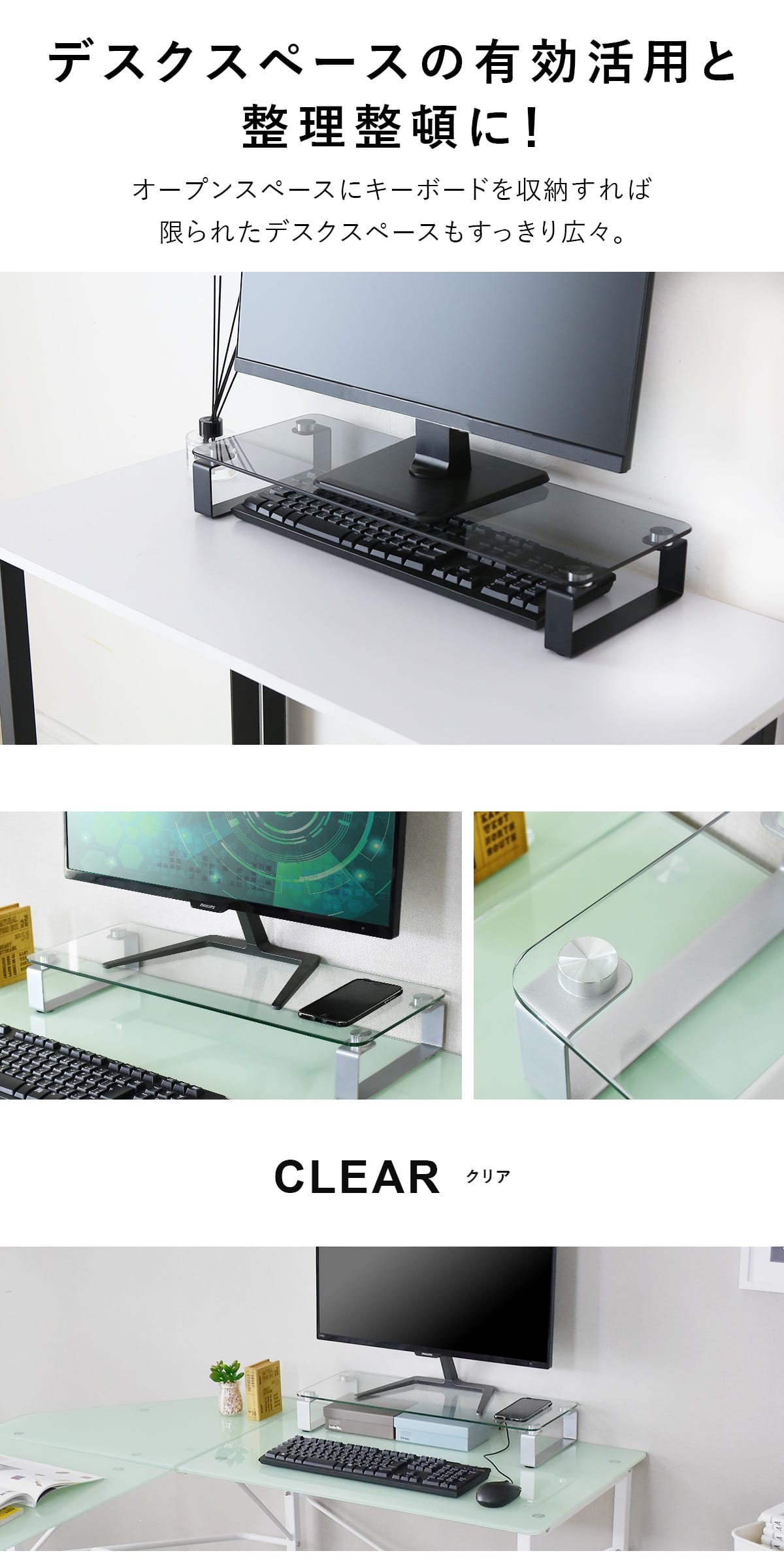 モニター台 ガラス おしゃれ ゲーミング 収納 パソコン オフィス デスク スタンド 棚 学習机 勉強 学習 シュート 北欧 ドリス