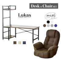 ローデスク パソコンデスク 袖机 座デスク ラック 木製 収納 書棚 座椅子 ローソファ フロアソファ 無段階 リクライニング 肘掛け 回転式 ルカス ミエル